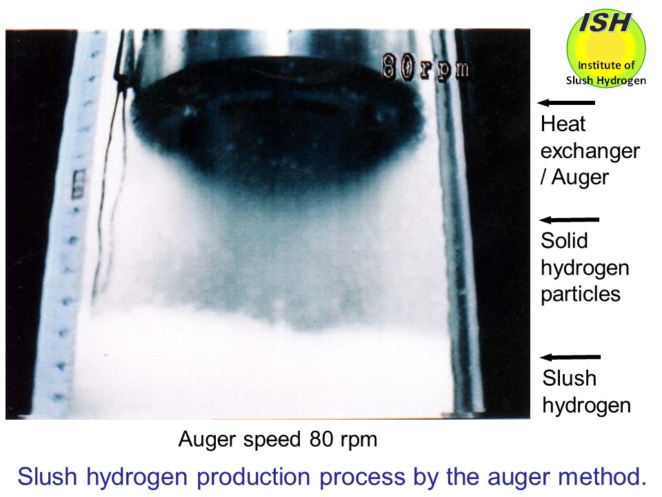 In the auger method, as illustrated in the figure at the beginning of this page, solid hydrogen formed on the heat transfer surface due to heat exchange
